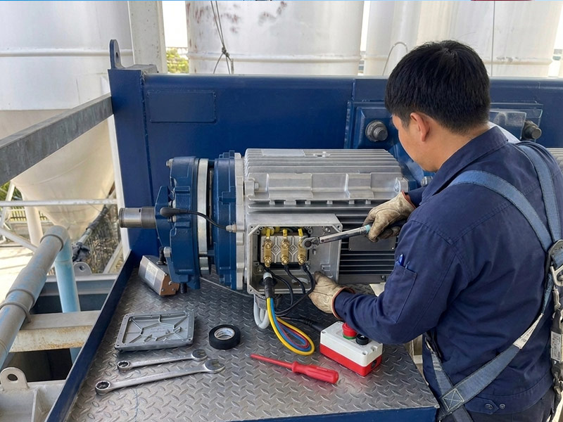แก้ไขดูแลได้ทุกอาการที่ติดขัด เช่น ซ่อมเครื่องผสมคอนกรีตเพลาคู่ (Twin Shaft Mixer), ซ่อมซีลหัวเพลา เพื่อแก้ปัญหาน้ำปูนรั่ว หรือแก้อาการซีลน้ำปูนรั่ว, เปลี่ยนแผ่นกันสึก (Liner Plate), ซ่อมบำรุงระบบไฟฟ้าและเครื่องชั่ง